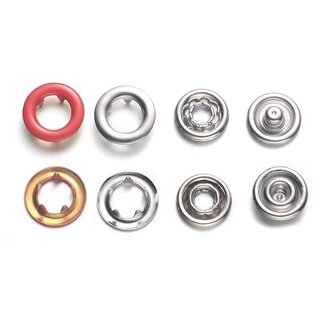 Trykknapper i nikkelfri metal alle med åbne kapper.