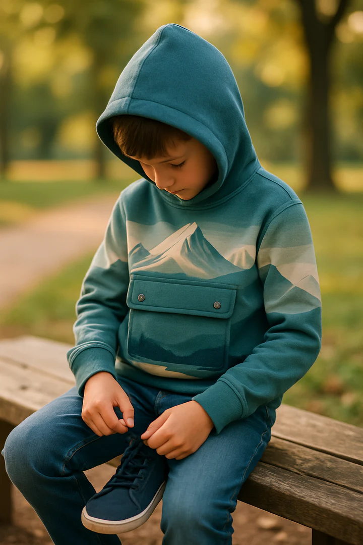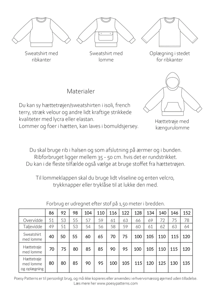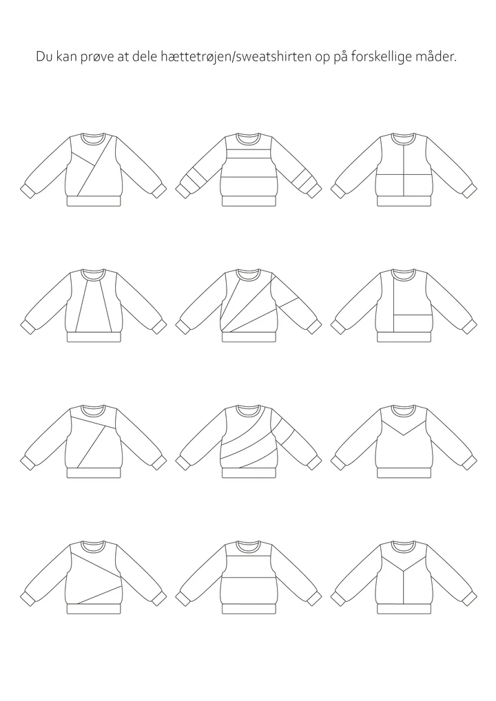 Hvis du har mange stofrester, kan du prøve at dele symønsteret op i forskellige felter og sy en hættetrøje/sweatshirt med dem.