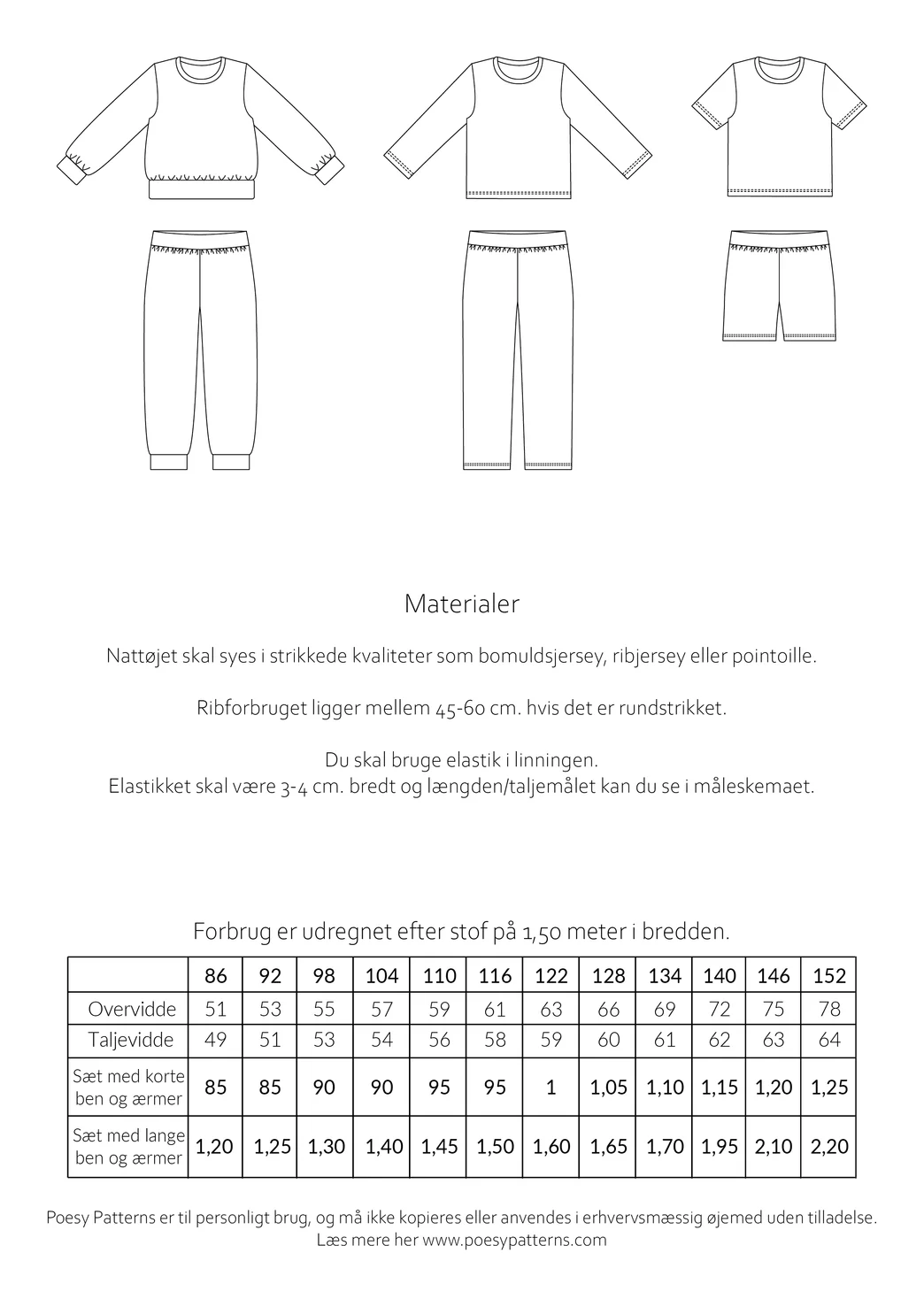 Du kan sy sættet i kvaliteter som bomuldsjersey, ribjersey og pointoille.