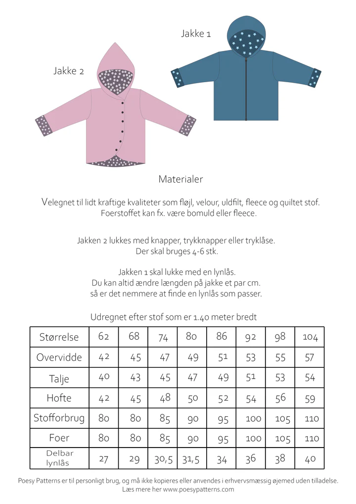 Den er både til drenge og piger og går fra størrelse 62 – 104.