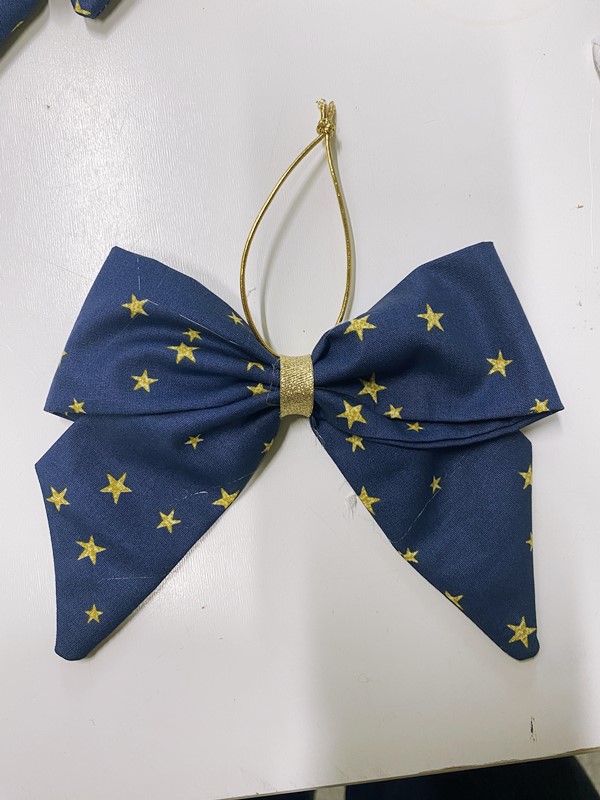 Sød lille stof sløjfe syet i bomuld med julemotiver.