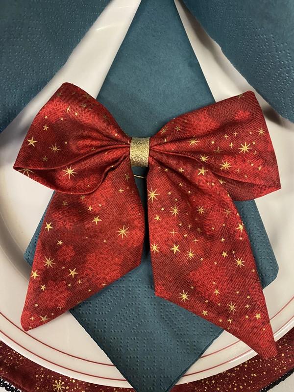 Sød lille stof sløjfe syet i bomuld med julemotiver.