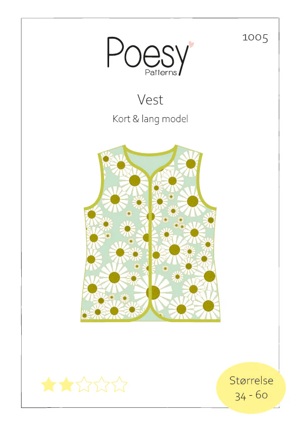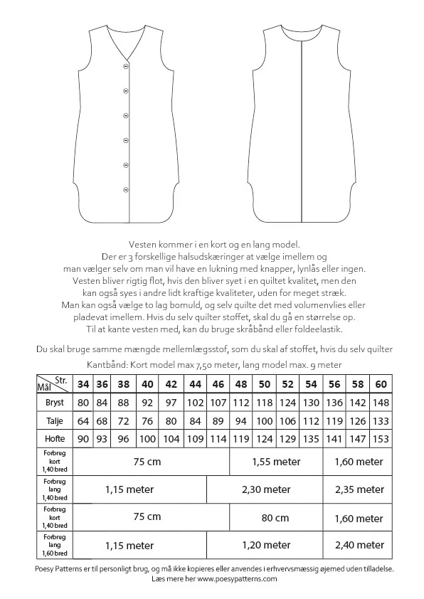 Nem vest som kan syes i quiltet stof eller bare 1 lag eller 2 lag stof syet sammen.